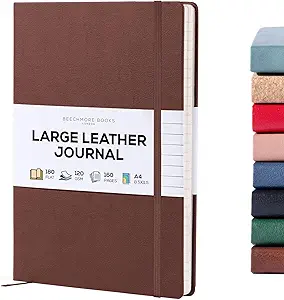 A faux leather journal with a soft-touch cover and gold embossing feels upscale without the price tag.