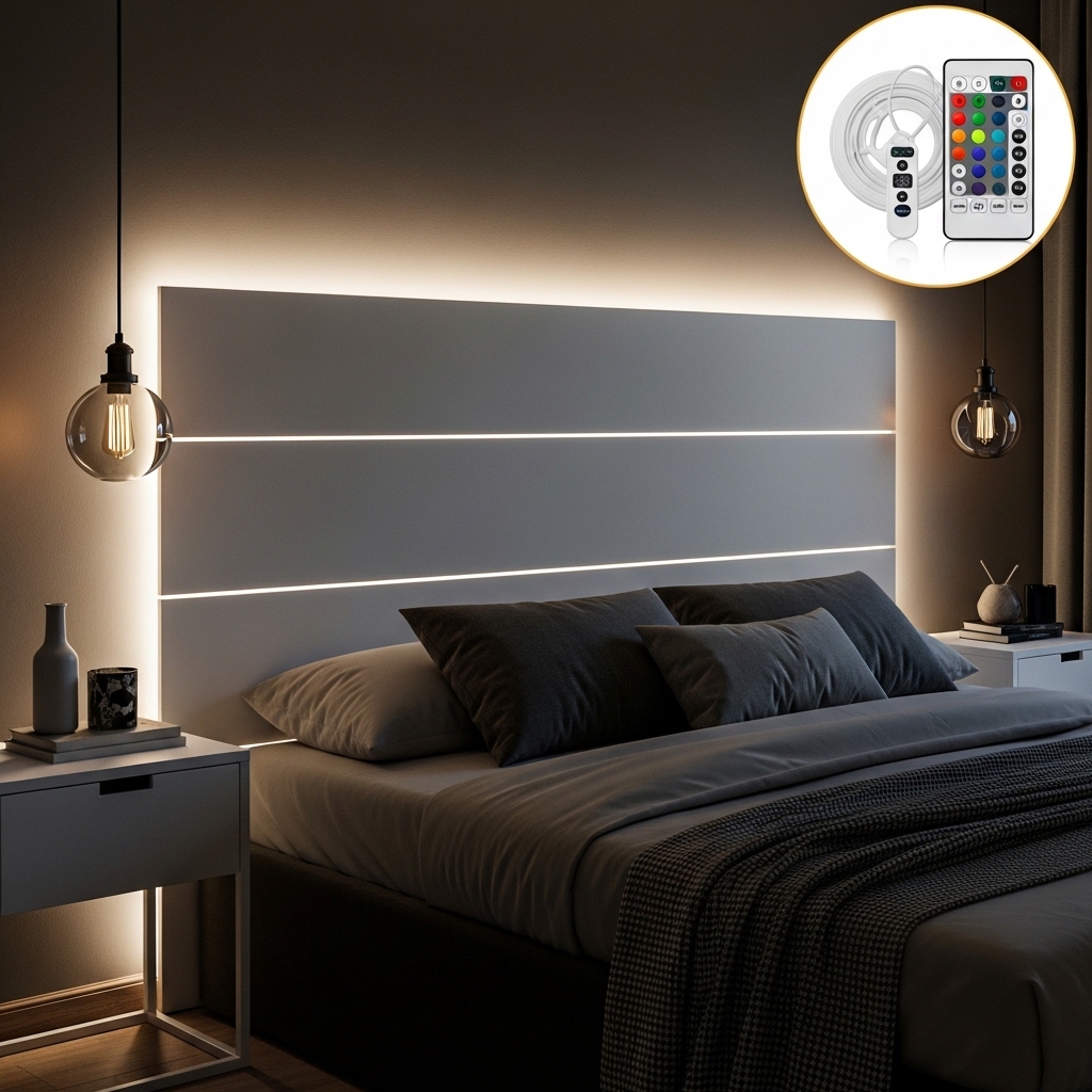 7. LED Backlit Panel Headboard