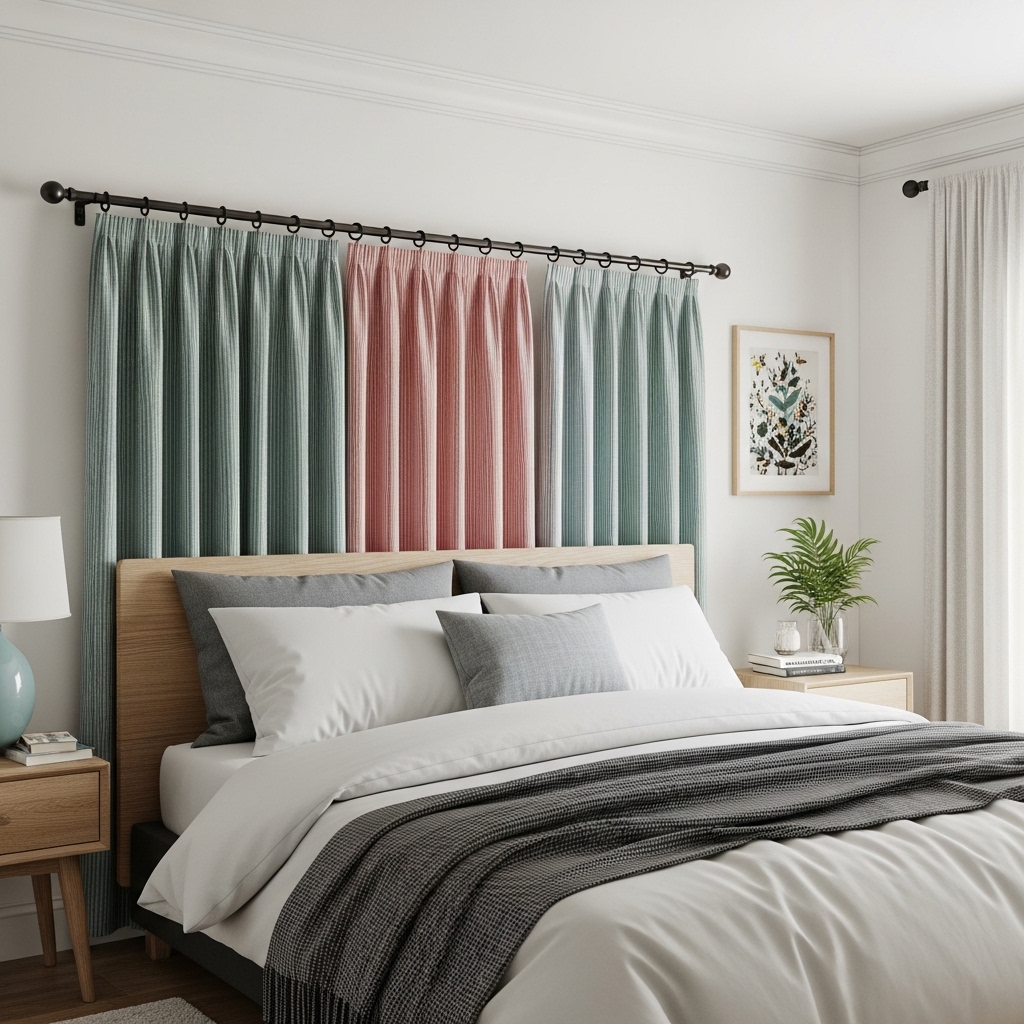 3. Curtain Rod Fabric Headboard