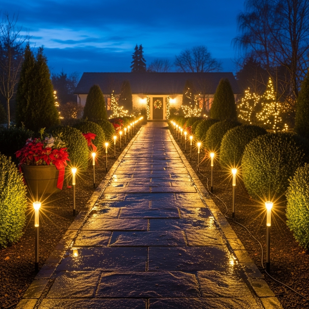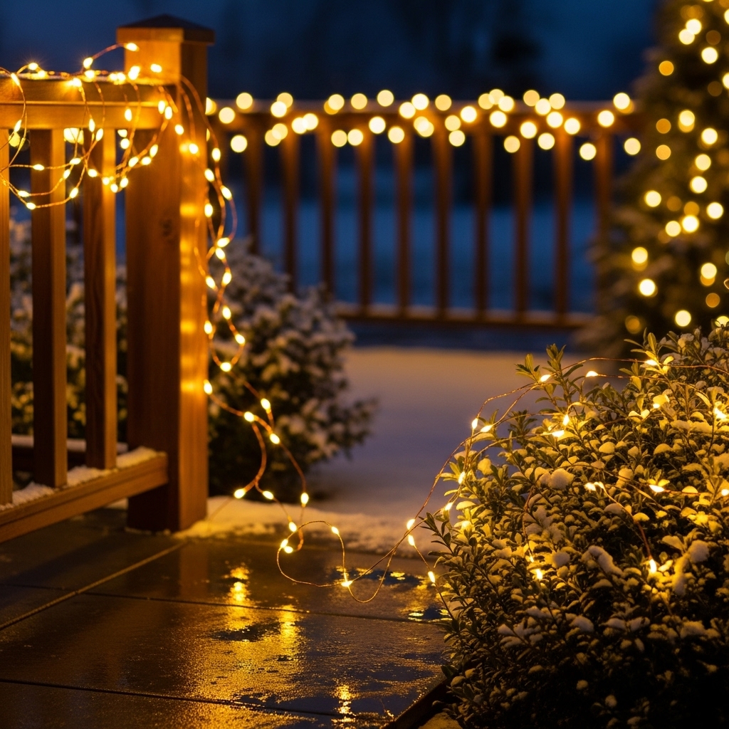 If you want that soft, golden holiday glow that makes everything look cozy and elegant, LED string fairy lights are a must. These waterproof beauties work great on bushes, fences, or wrapped around porch rails.