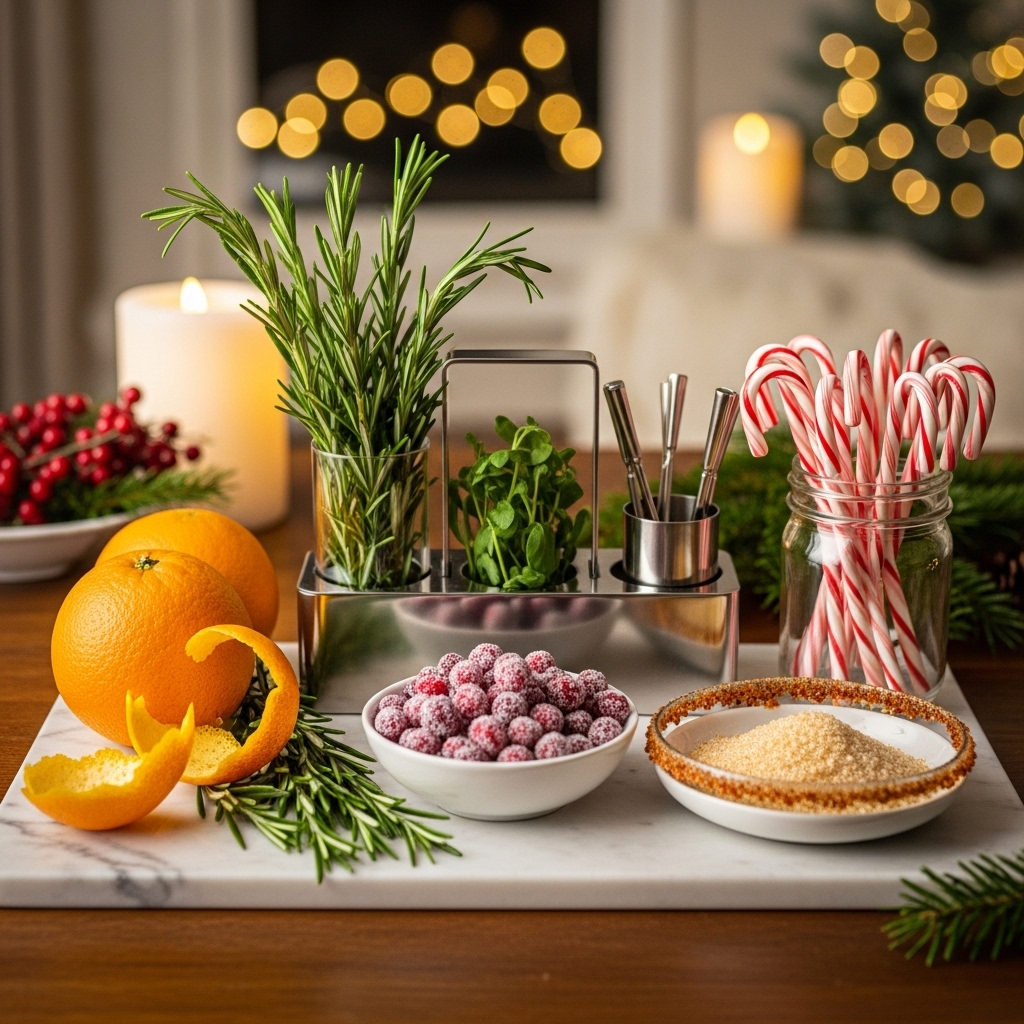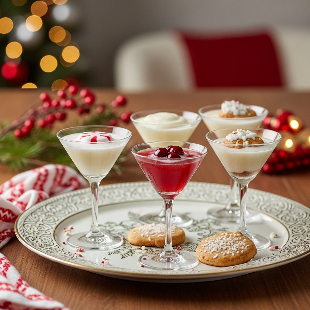 This is the part where your guests feel like they walked into a trendy downtown bar. Mini martinis always impress because they look adorable and taste like holiday magic.