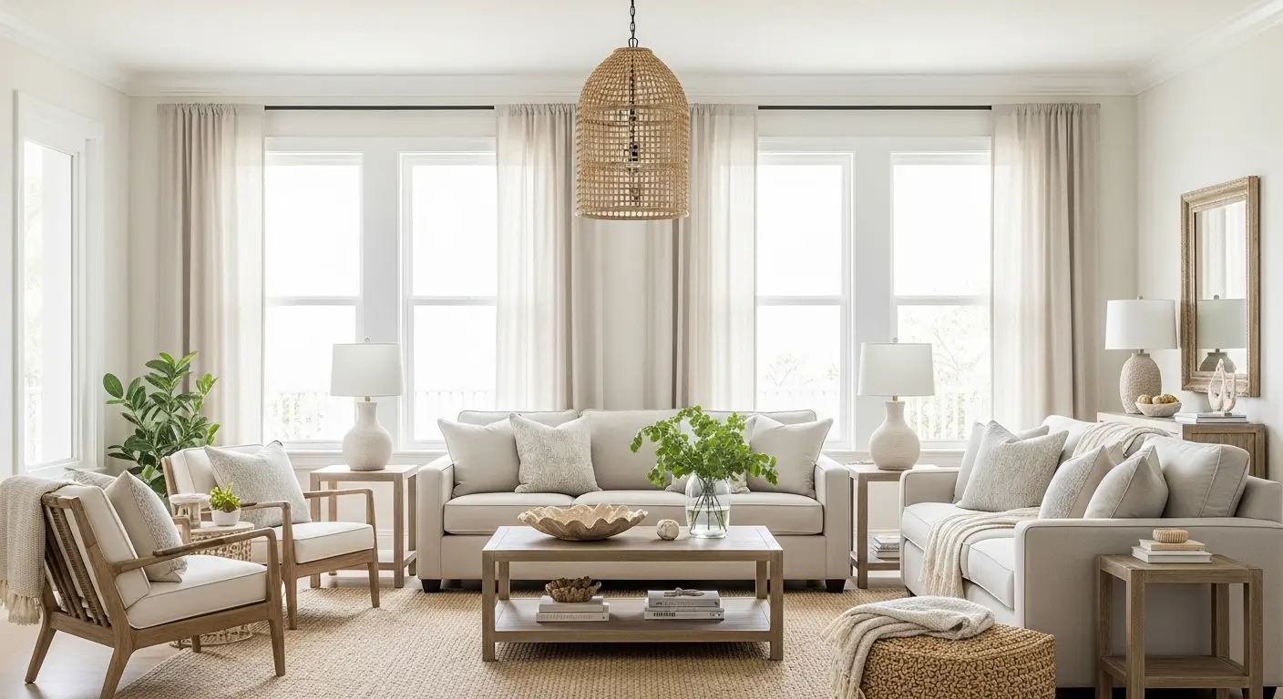 A coastal living room should feel bright and open. Heavy curtains kill that vibe instantly.