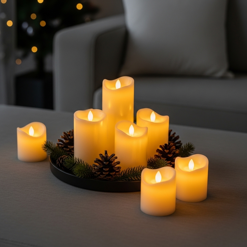 If you’re like me and worry about knocking them over mid-binge-watch, flameless LED candles are a total game changer. They flicker like the real thing and last all season.
