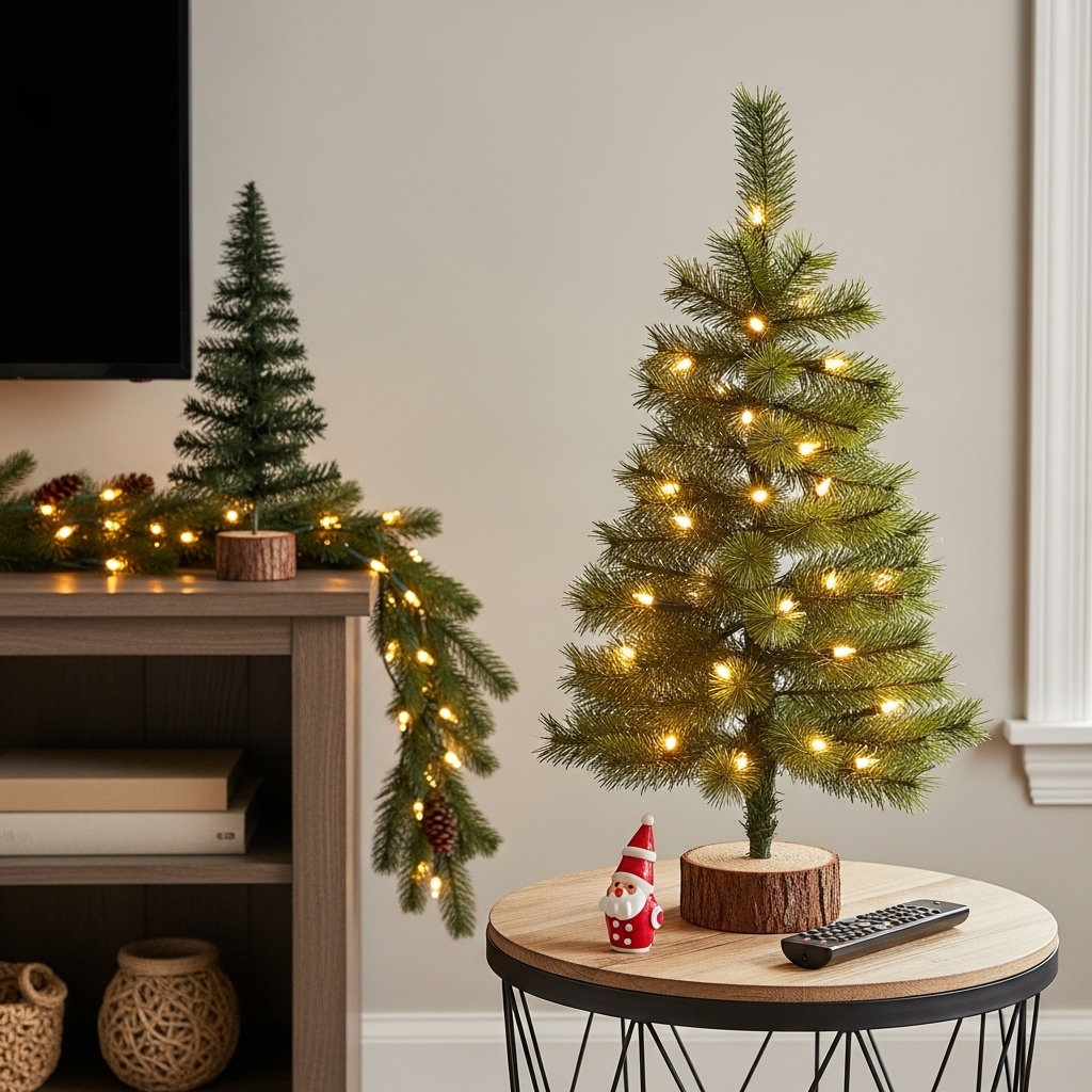 Place it on a side table, shelf, or TV stand, and you’ll still get that Christmas charm without tripping over it every time you grab the remote.
