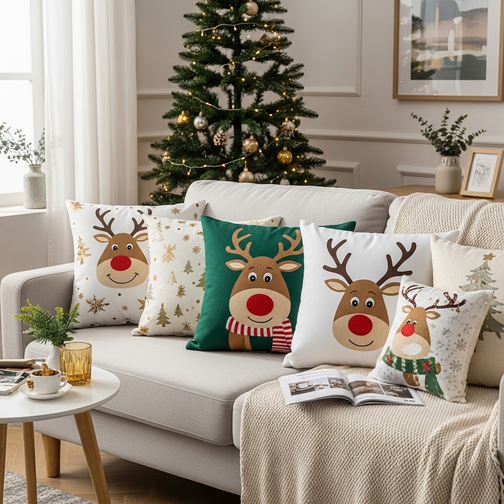 A few cute covers with reindeer, snowflakes, or subtle gold patterns can instantly make your couch holiday-ready.