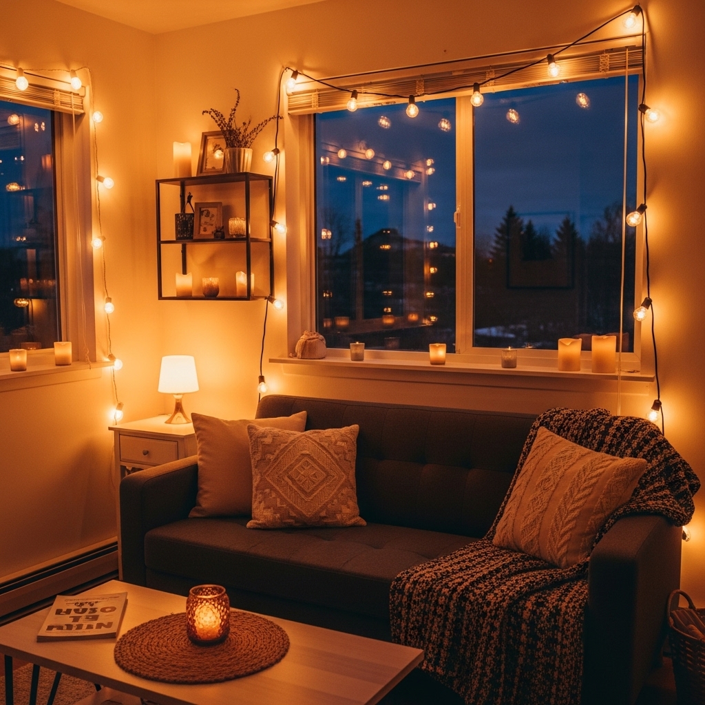 If I had to pick one thing that instantly makes a small living room cozy, it’s warm lighting. Harsh white bulbs? Nope. Soft amber or golden light? Absolutely yes.