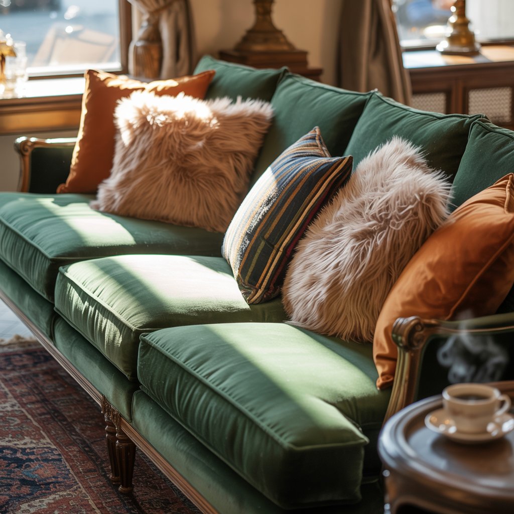 Pile them on your couch, armchair, and bed. Choose soft fabrics like velvet, faux fur, and wool.