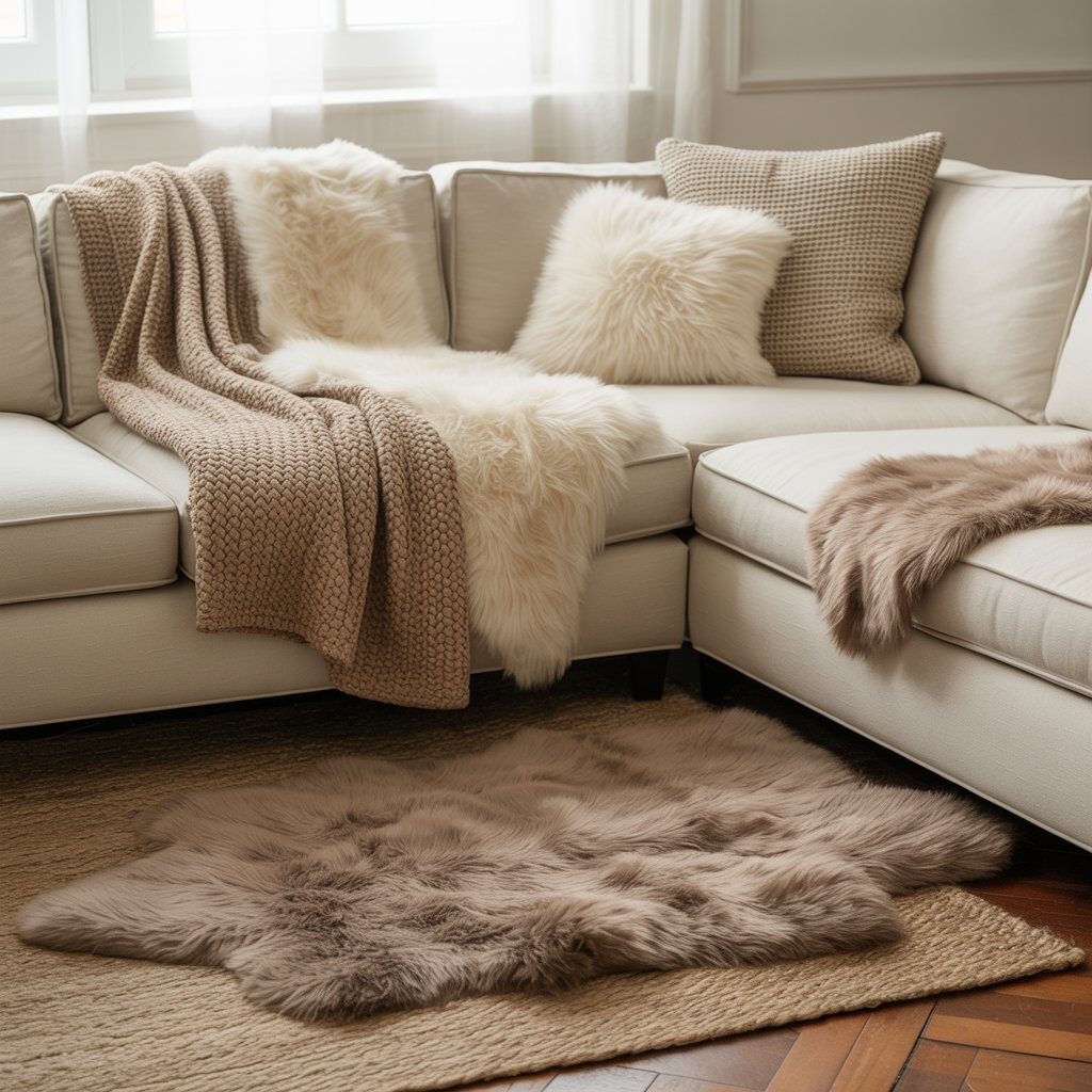 Start with your sofa or bed—pile on throws, faux fur blankets, and textured cushions like you’re prepping for a snowstorm (because maybe you are).