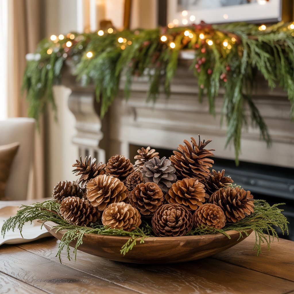 Winter décor doesn’t mean fake snow everywhere. Bring in natural materials like wood, pinecones, and greenery.
