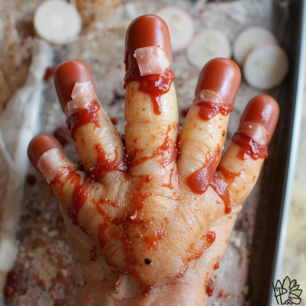 Slice notches in hot dogs to look like knuckles, add a square of onion for the “nail,” and drizzle with ketchup. Gross? Yep. Hilarious to kids? Absolutely.