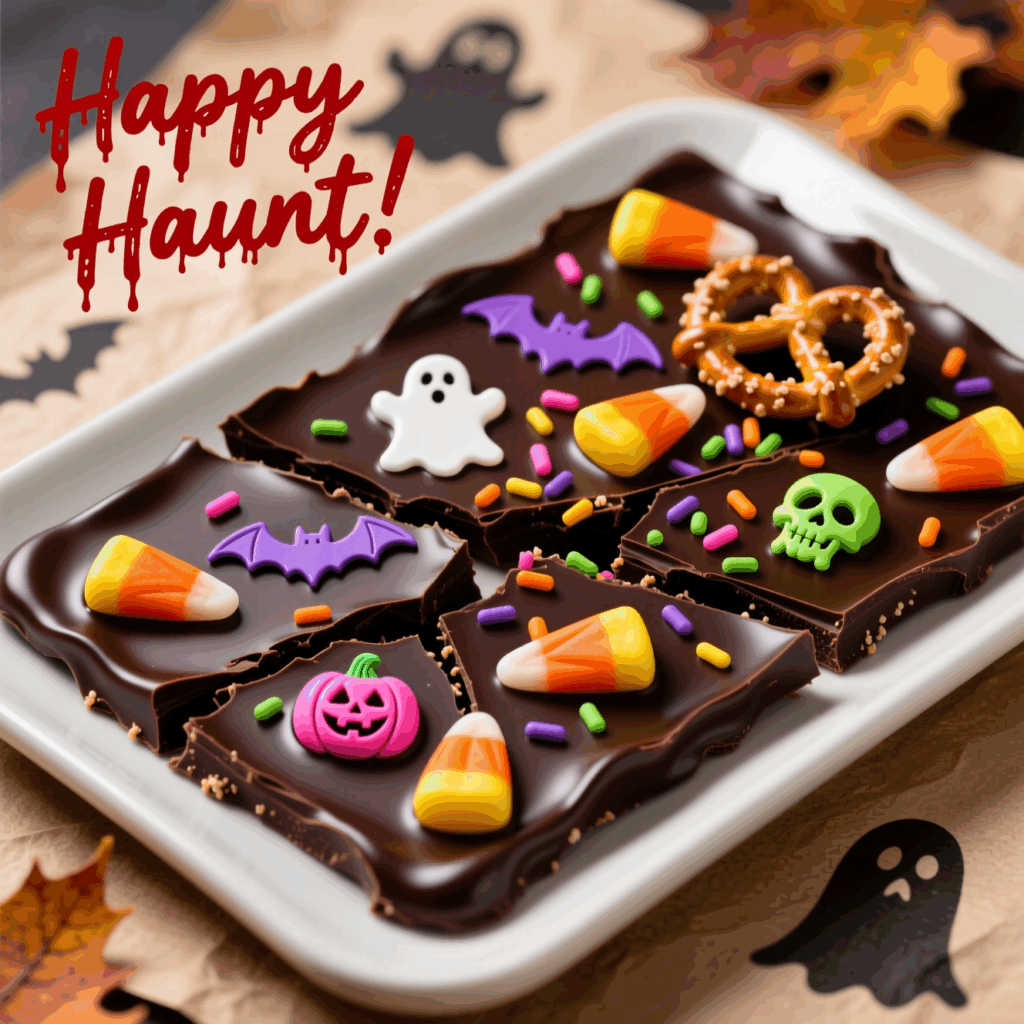 Melt chocolate, spread it thin, and load it with candy corn, pretzels, and sprinkles. Break it apart, and you’ve got festive bark that looks way fancier than it is.
