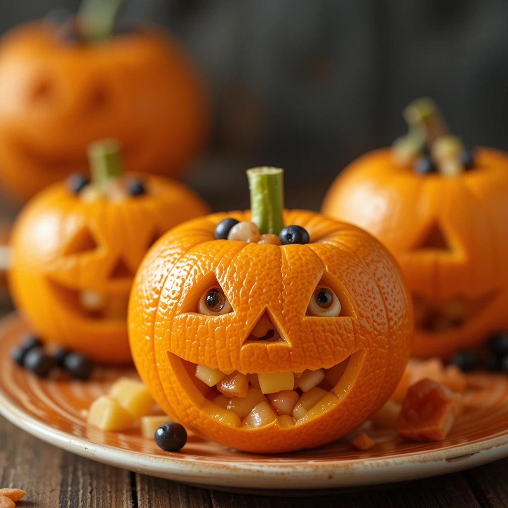 Hollow out an orange, carve a jack-o’-lantern face, and fill it with fruit salad. It’s healthy and festive.