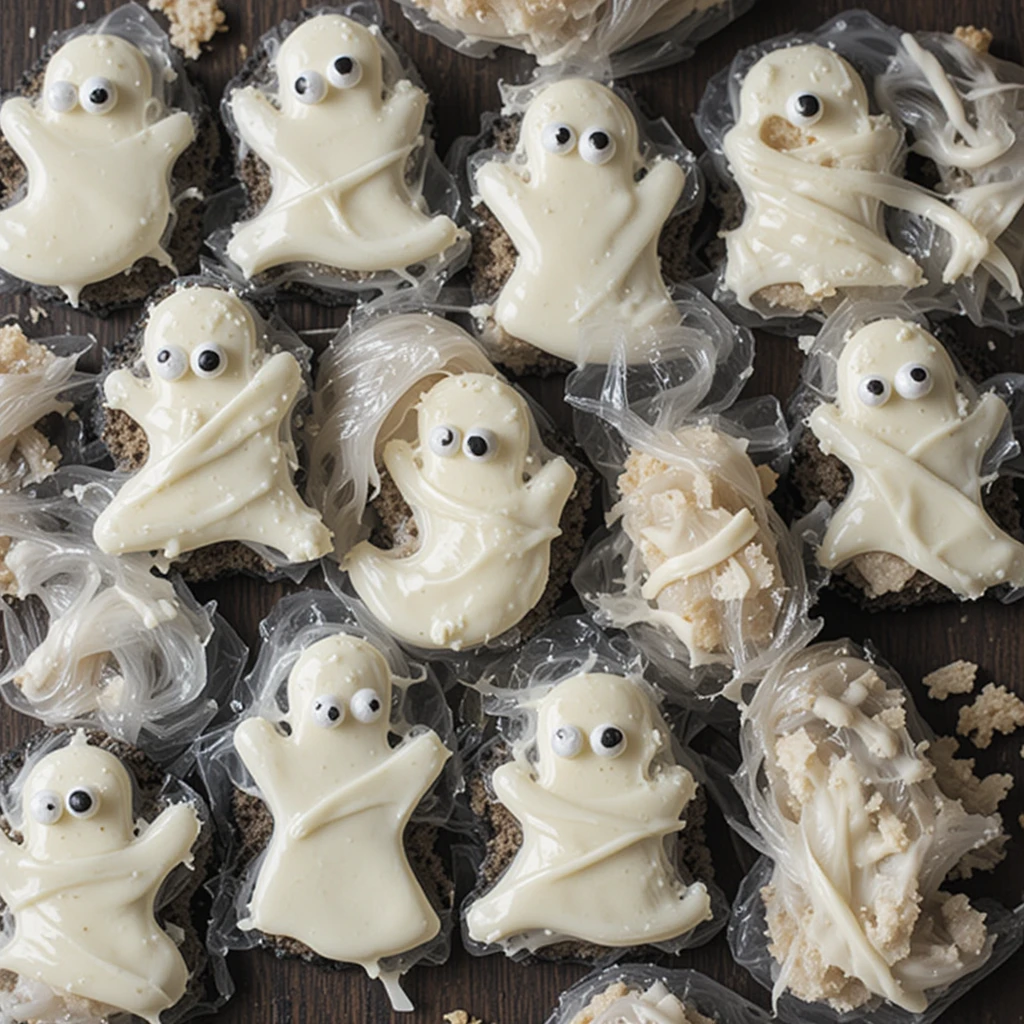 Nothing screams childhood nostalgia like Rice Krispie Treats. Add melted white chocolate and candy eyes, and boom—you’ve got little ghosts.