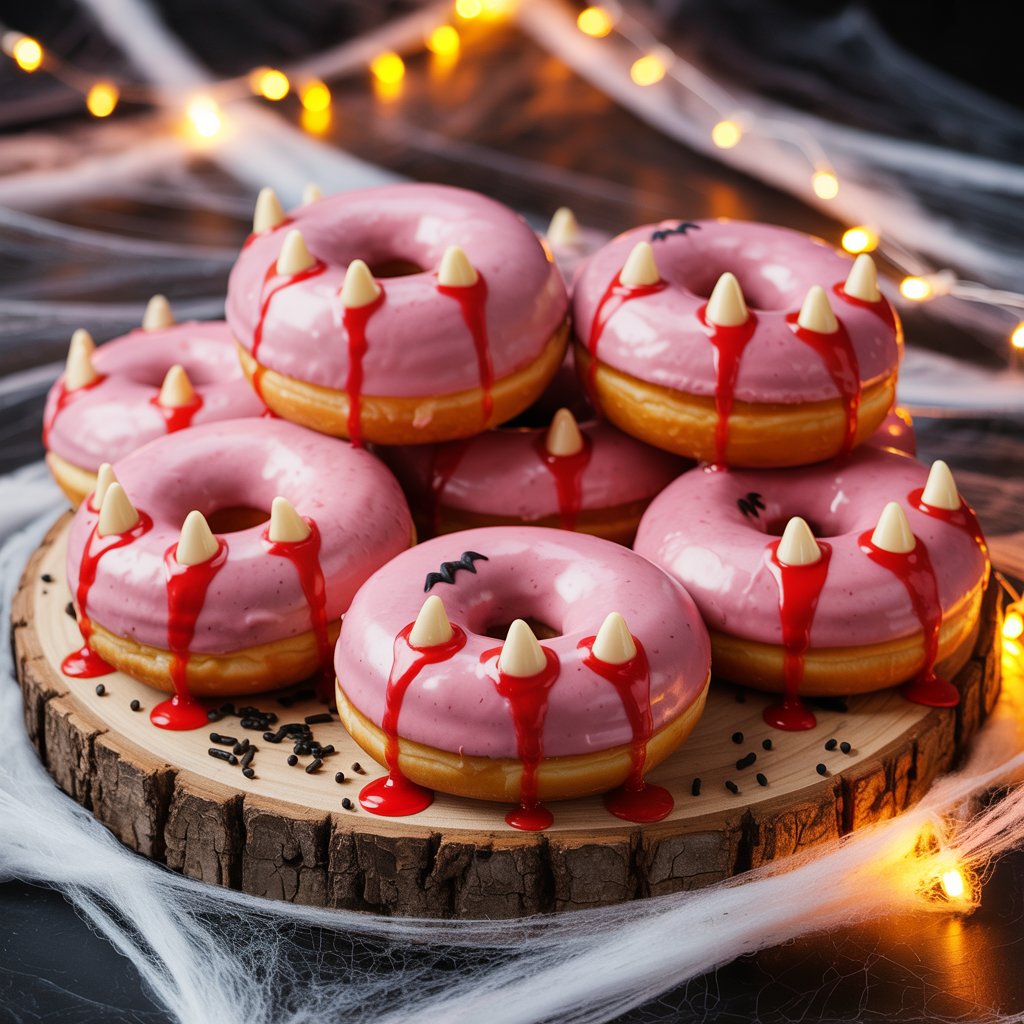 Take store-bought donuts (no shame), stick in plastic vampire teeth, and use red gel for “blood.” Instant Halloween party hit.