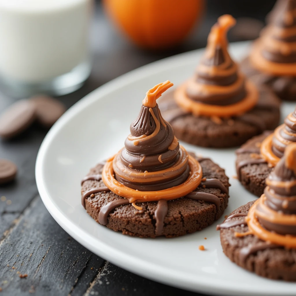 These are the treats that look impressive but are ridiculously easy: take fudge-striped cookies, attach a Hershey’s Kiss with frosting, and pipe a little orange “band” around it.