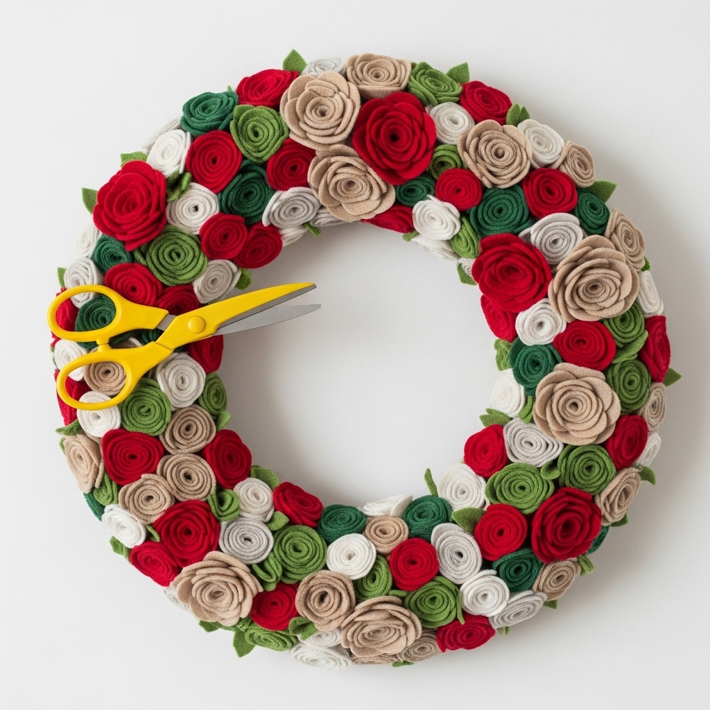 You can stick with classic reds and greens or mix neutrals for a modern twist. Ever rolled felt into a flower? It’s strangely satisfying.