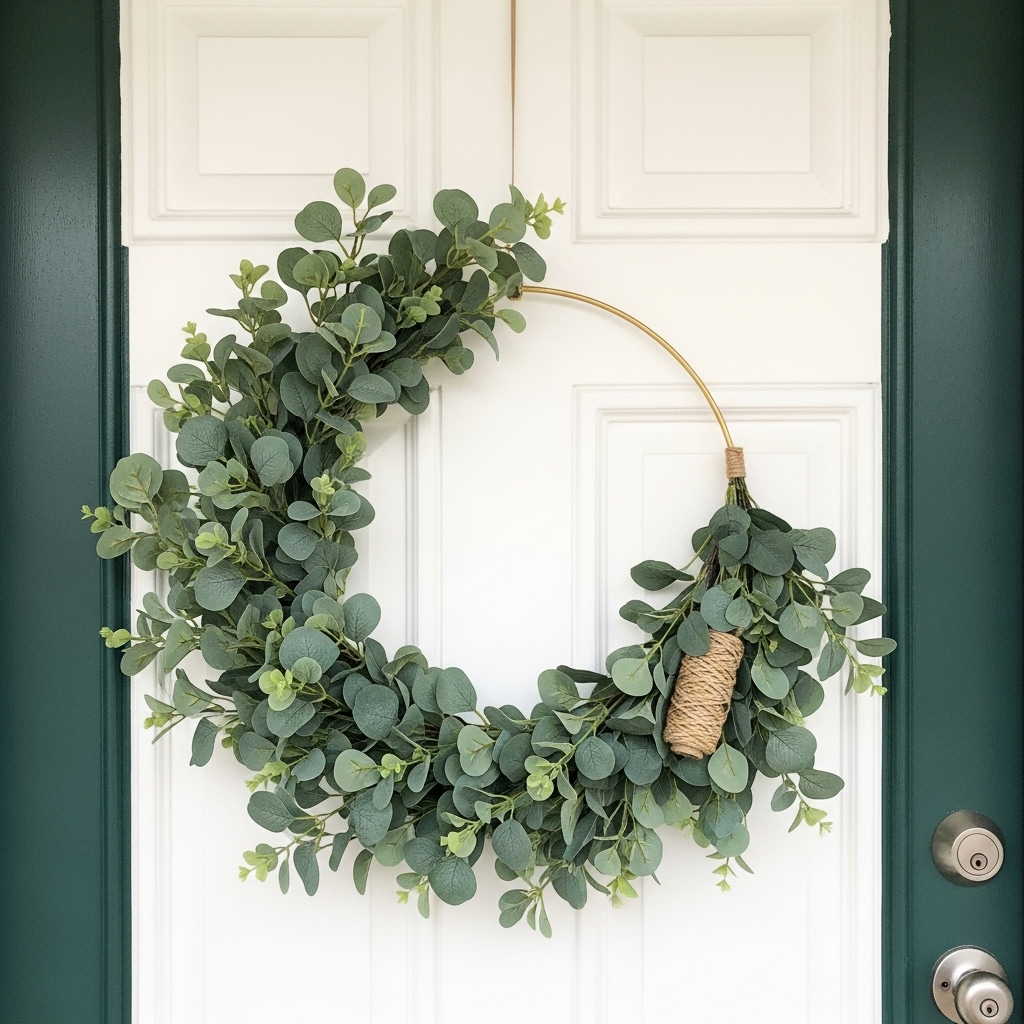 A eucalyptus wreath works indoors or outdoors and brings a clean, modern look.