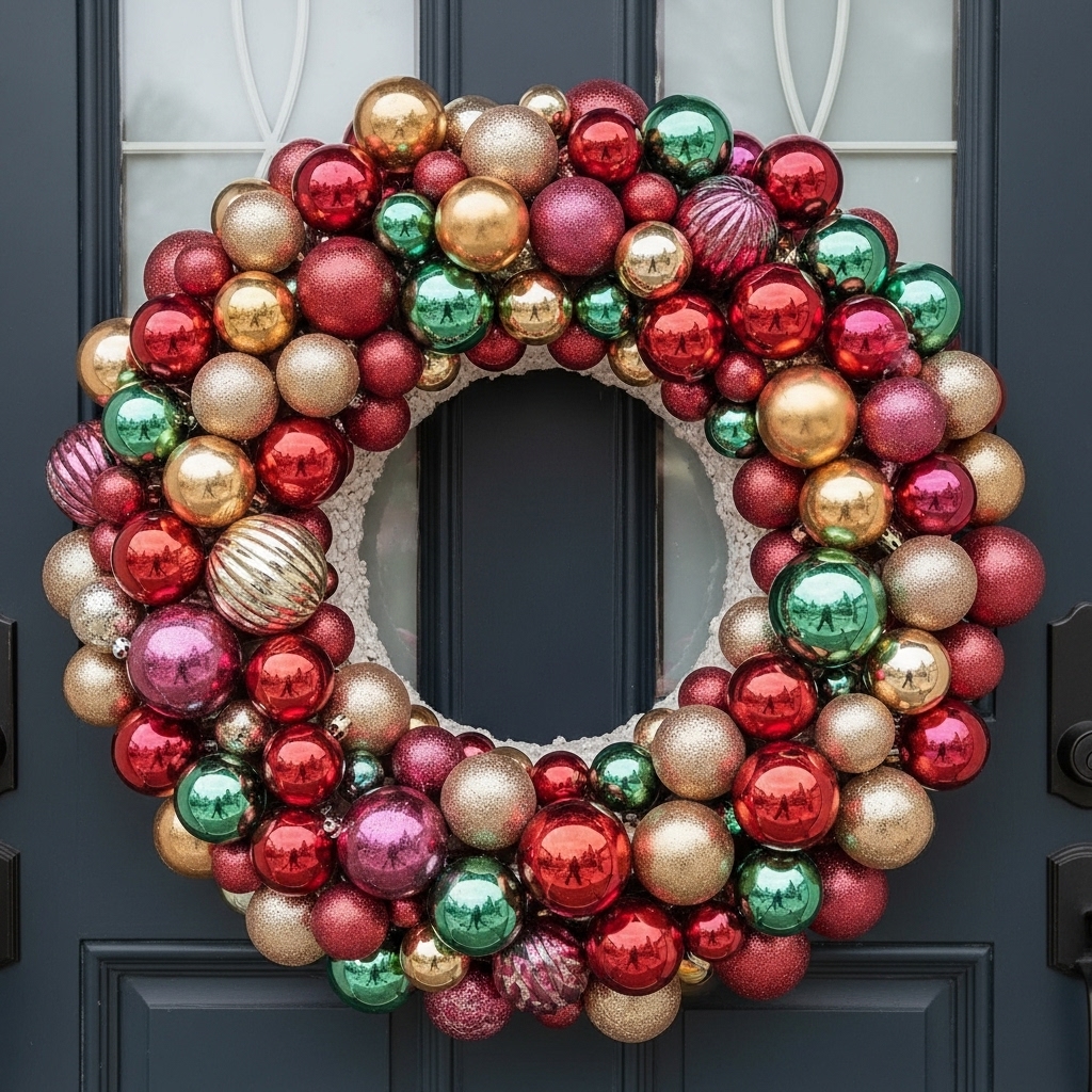 If you love retro Christmas décor, this wreath is pure joy. Think shiny, sparkly, kitschy goodness.
