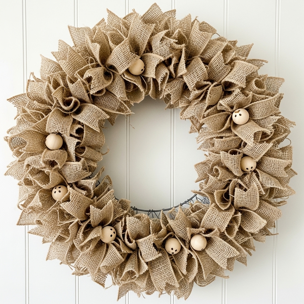 If you like that farmhouse vibe, you’ll love this. Burlap wreaths give your space a cozy, country feel without turning your home into a barnyard.