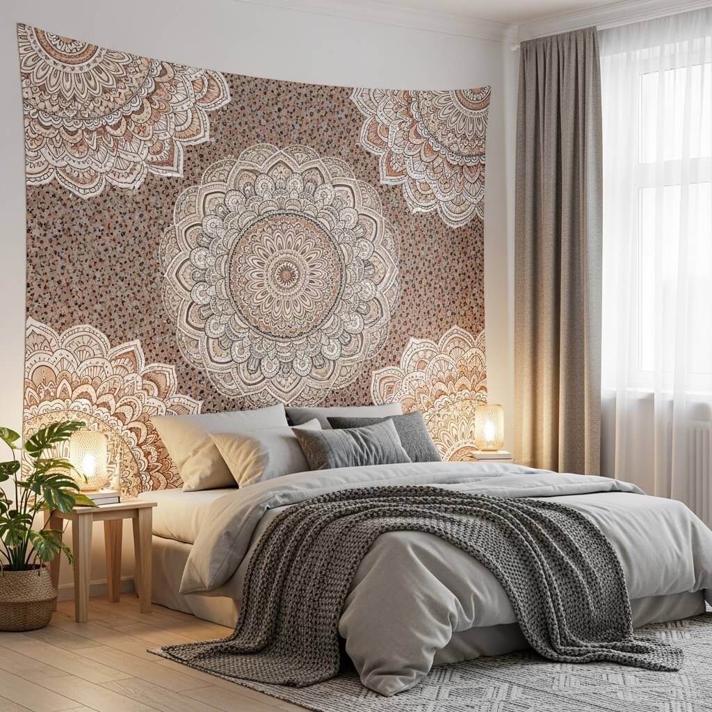 A tapestry covers a big wall without looking heavy. I use one behind my bed when I want instant drama without painting. Boho tapestries make your room feel cozy and artistic, and they hide boring walls fast. Isn’t that way easier than repainting?