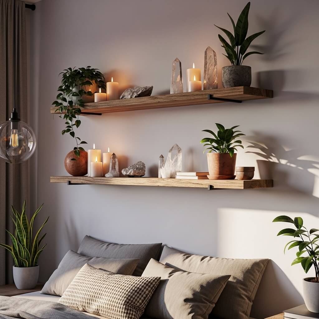 Shelves let you show off your favorite boho accents. I keep crystals, candles, and tiny plants on mine and they always catch attention. Boho wall décor feels more personal when you display your own treasures, right? Who wants a room that feels copied?