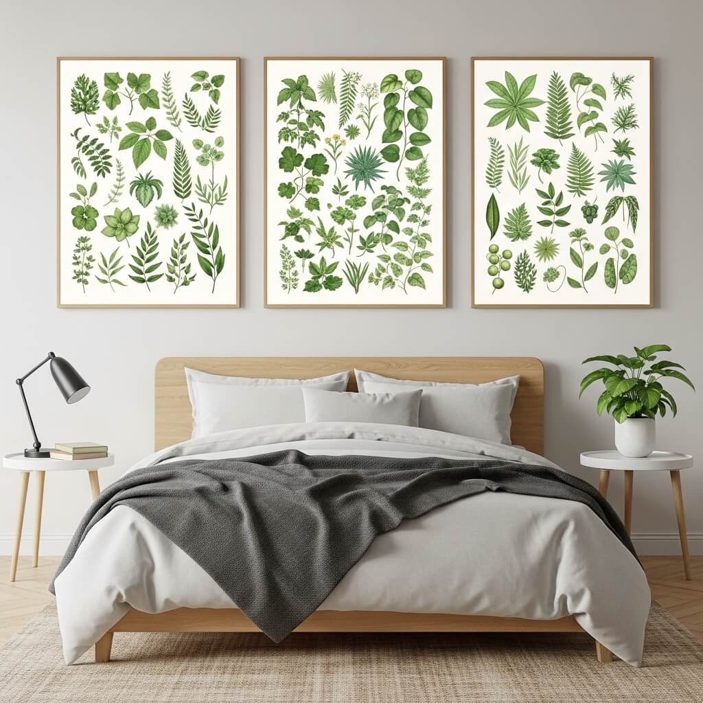 Plants calm the mind, but not everyone can keep them alive. I learned that the hard way FYI. Botanical wall art gives you that green, earthy feel without worrying about watering schedules. Doesn’t a touch of nature always make a room feel happier?