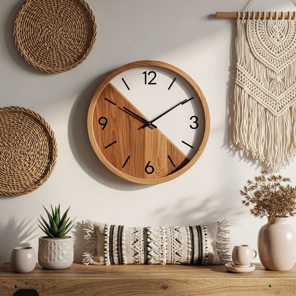A clock can feel boring, but boho clocks look like art. I picked one with a wooden frame and it added warmth instead of looking cold. Boho wall décor works best when every piece feels intentional, even the practical stuff. Why not make time look cute?