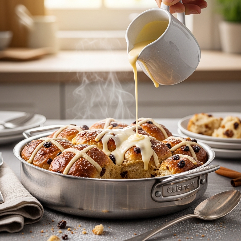 Ever had leftover hot cross buns and thought, “I hate wasting these”? Enter bread pudding. Cube your buns, add a custard mix, bake, and boom, dessert heaven.