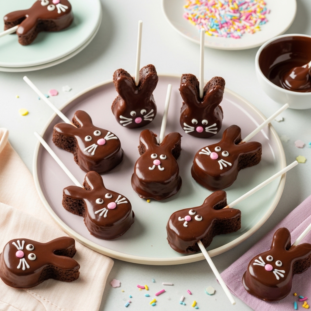 Brownies are always a crowd-pleaser. Cut into fun bunny shapes, stick on a lollipop stick, and dip in chocolate for instant cuteness.