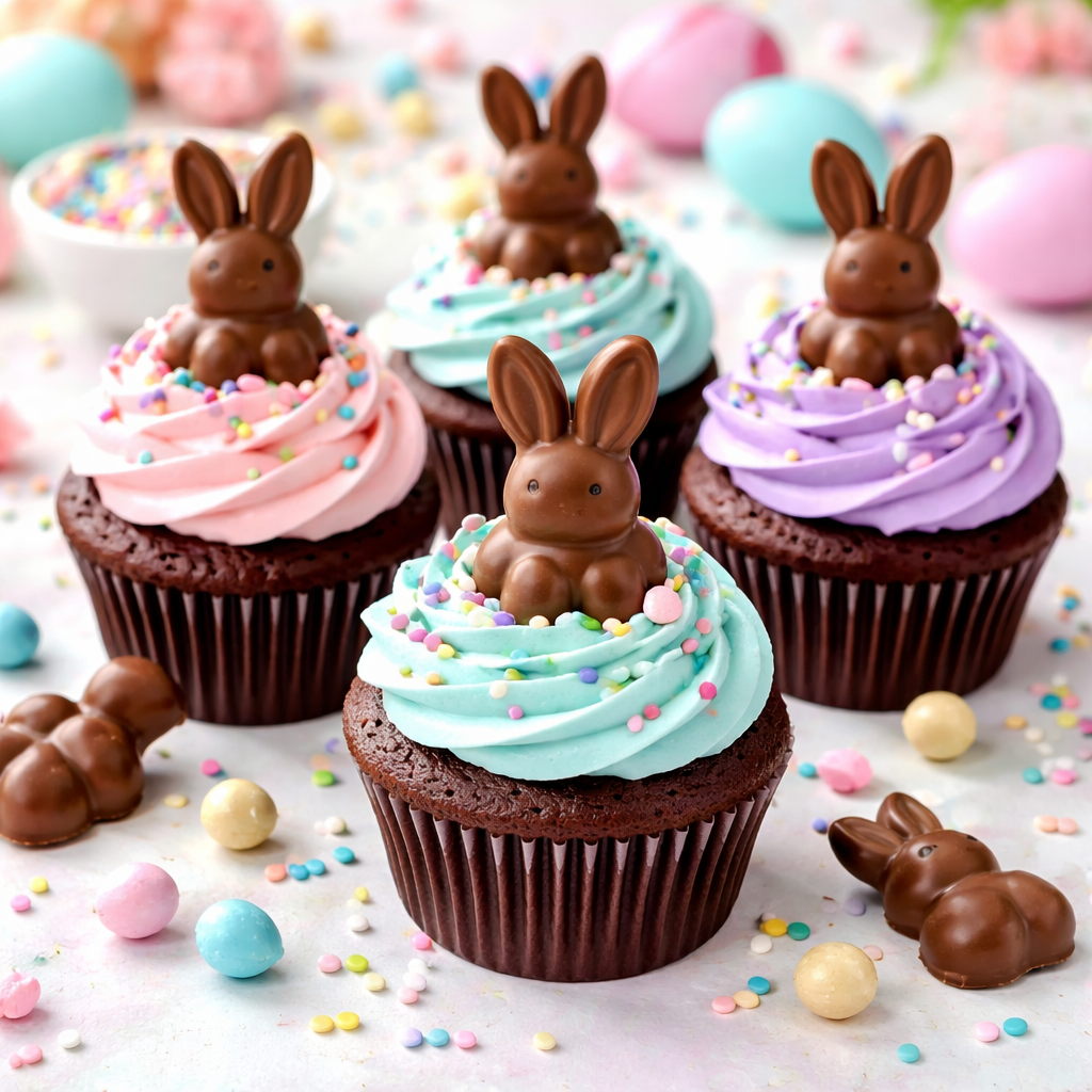 Let’s be honest, anything chocolate is an instant hit. Top cupcakes with little chocolate bunny shapes, sprinkles, and pastel frosting, and you’re basically a hero.