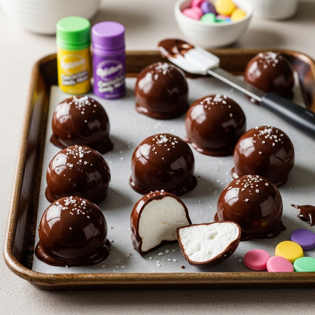 Simple, classic, and dangerously addictive. Dip marshmallow-filled eggs in chocolate, let them set, and watch them disappear.