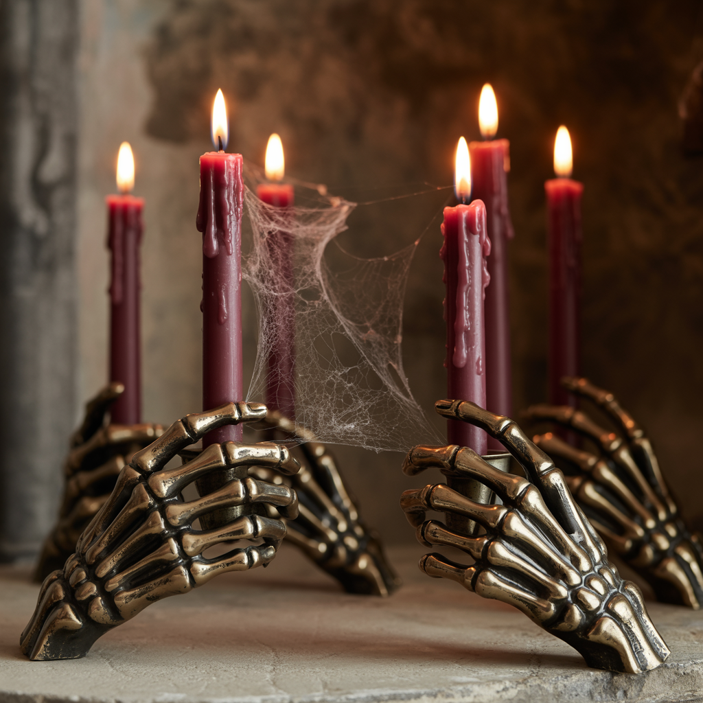 Upgrade your candle game with some creepy candle holders. Look for ones shaped like skeleton hands or with gothic designs. They add a touch of drama and are perfect for setting the mood.