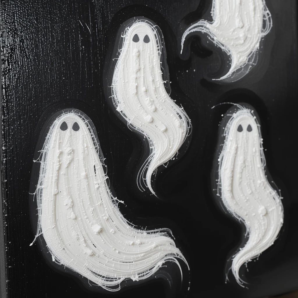 Channel your inner artist with some DIY ghost wall art. Grab a black canvas, some spackle, and a palette knife. Create ghostly figures with texture and paint them white.