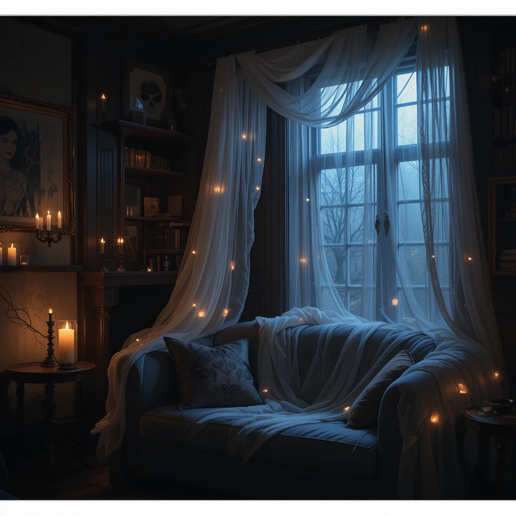 Drape some sheer, gauzy fabric over furniture or windows. When lit by candlelight, it casts haunting shadows that add depth and mystery to your space.