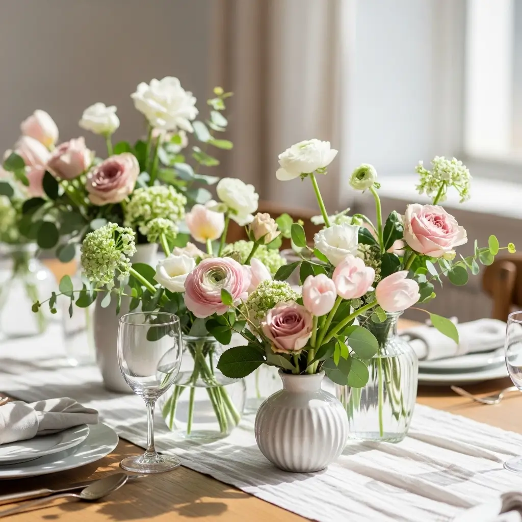Pro tip: Cluster small arrangements instead of one big centerpiece. It looks intentional.