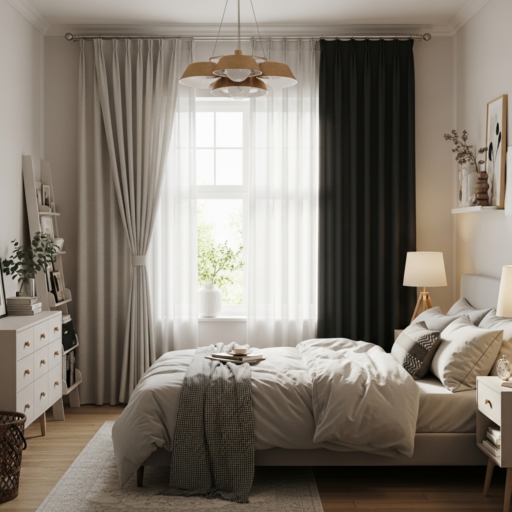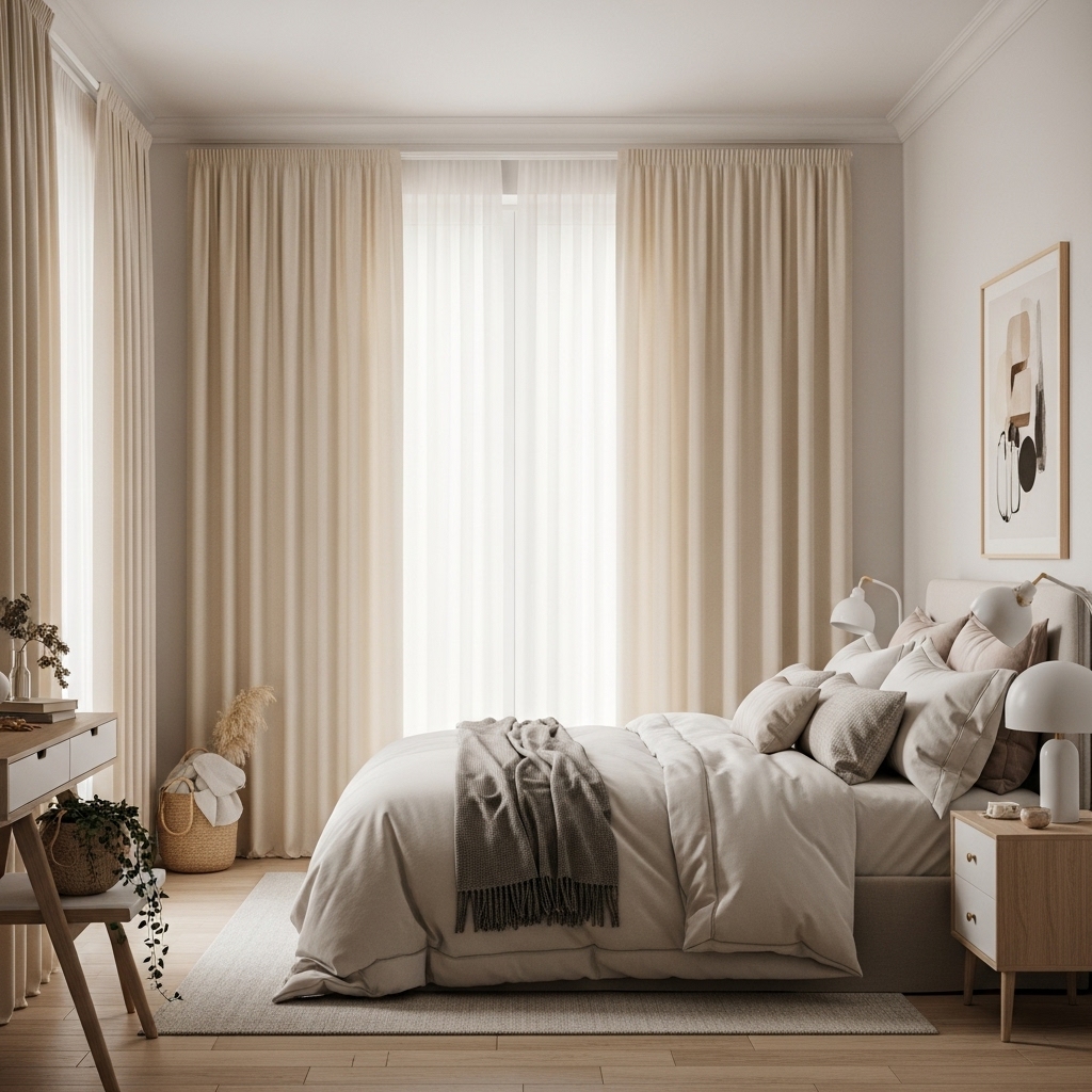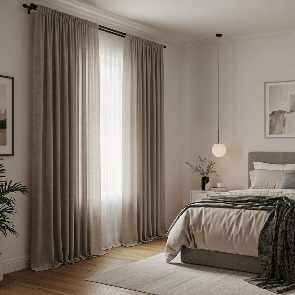 If you value sleep, blackout-adjacent curtains matter. Beige keeps it soft instead of cave-like.