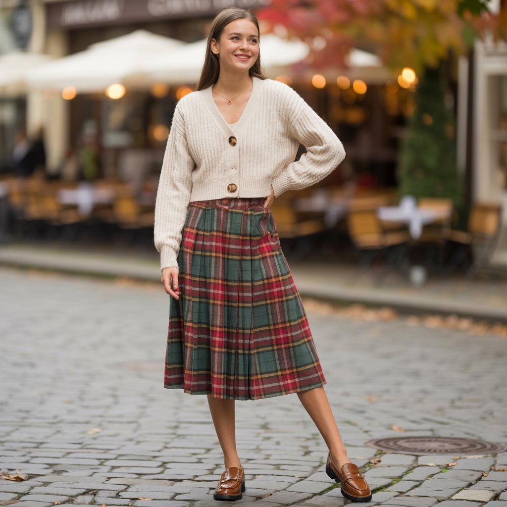 6. Plaid Skirt + Cozy Cardigan