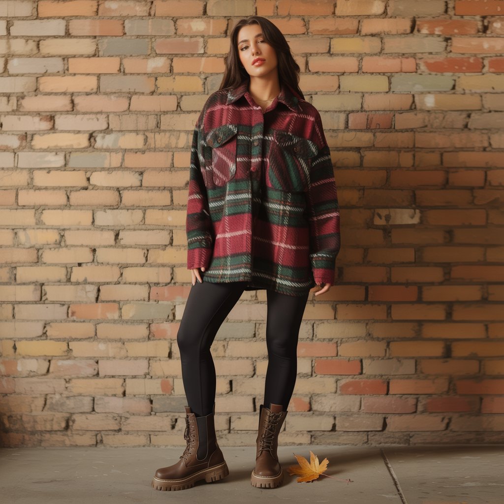 - Plaid Shacket – Cozy layering piece.