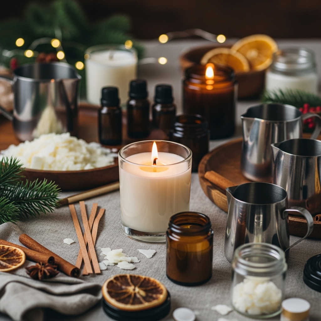 Hearts & Crafts Soy Candle Making Kit – comes with wax, wicks, tins, and scents. Great for beginners.