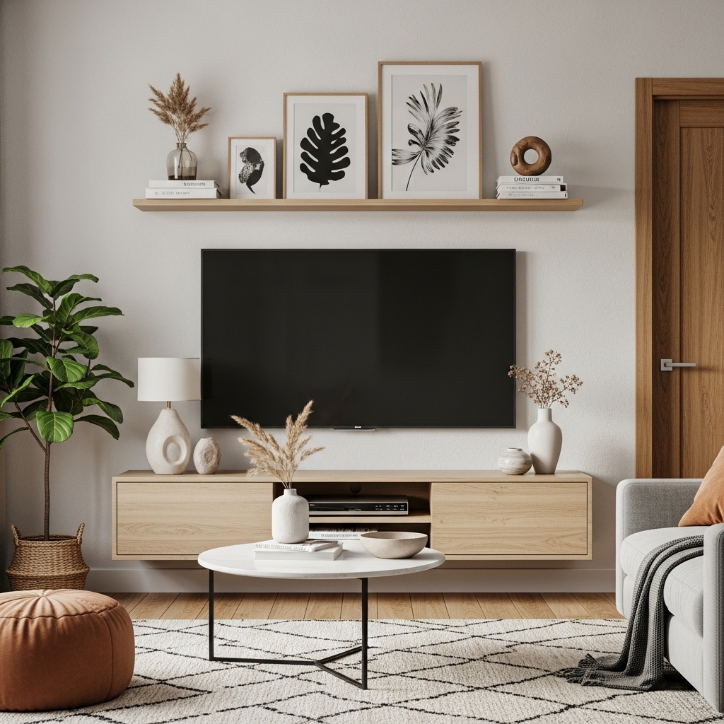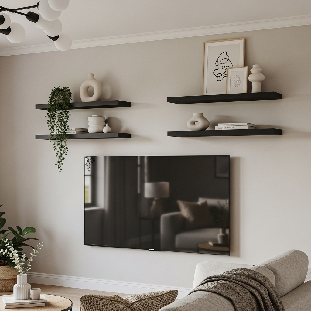 Floating shelves sit at the top of the list when people ask how to decorate above a TV on wall. And for good reason. They look polished when done right and chaotic when done wrong.