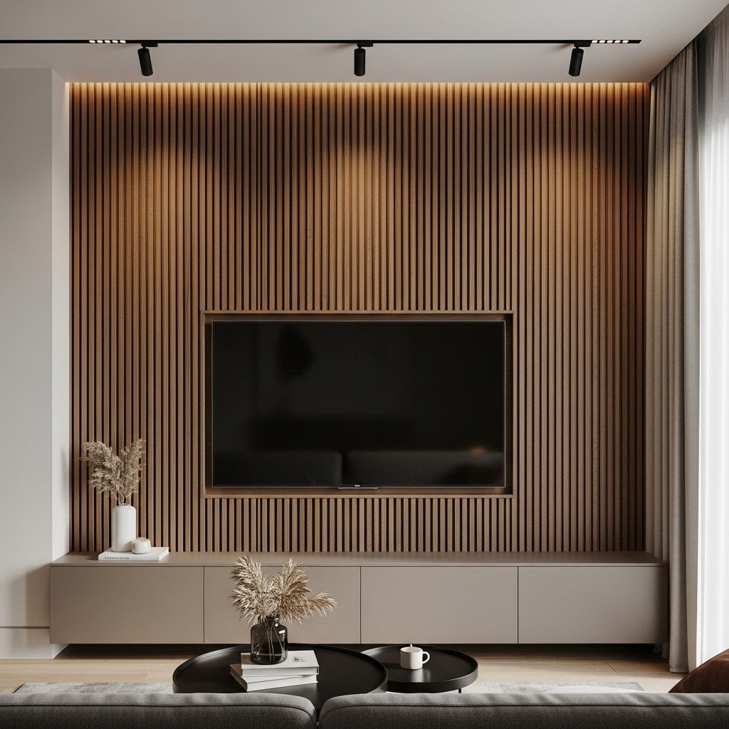 They frame the TV without extra decor. They add texture without clutter. And they make the TV feel built-in.
