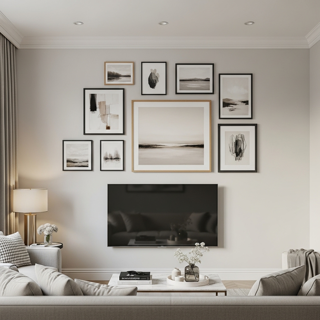 4. Gallery Wall Above the TV (Yes, It Can Work)