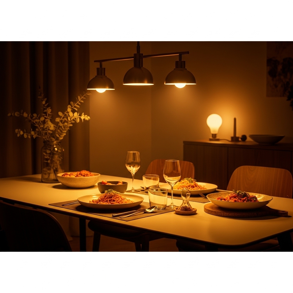 Let me say it clearly: cool white bulbs make your food look terrible. I once served pasta under cool lighting and it looked like something from a hospital cafeteria.