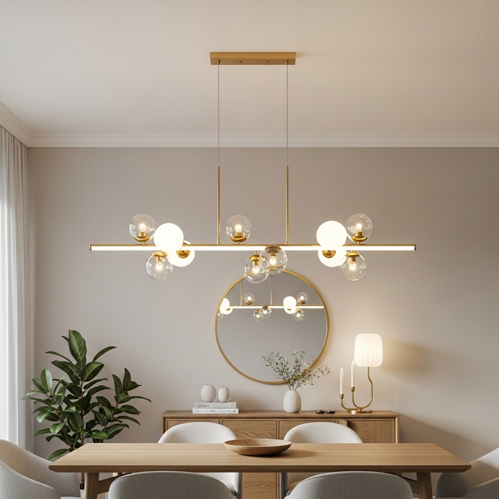 - Linear Pendant Lights – Great for long tables. They spread the light evenly and look modern without trying too hard.