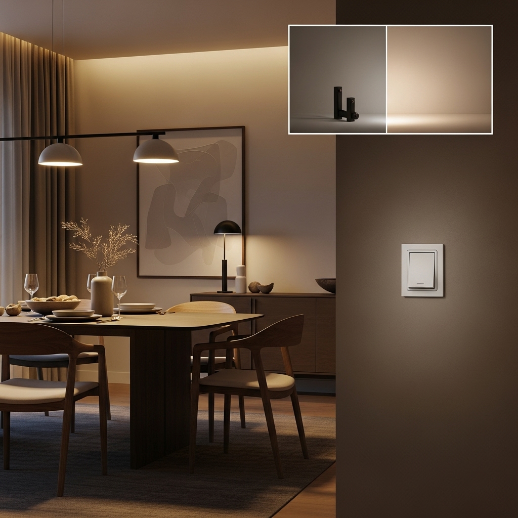 A dimmer gives you control over mood. Bright for family dinners, soft for date night, low for “I just cleaned… let’s keep the lights calm” vibes.
