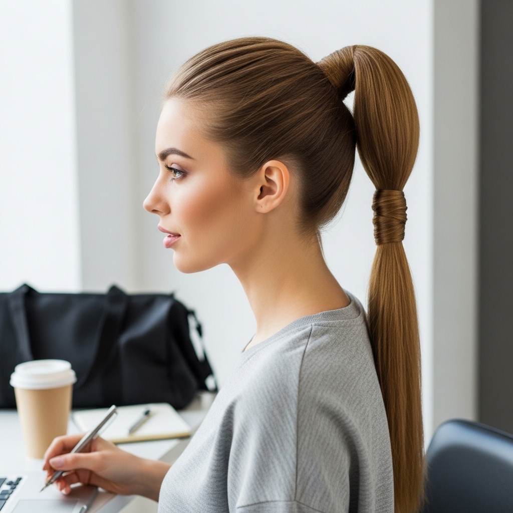A high ponytail is like the Swiss Army knife of hairstyles. Work, gym, date night – it handles it all.