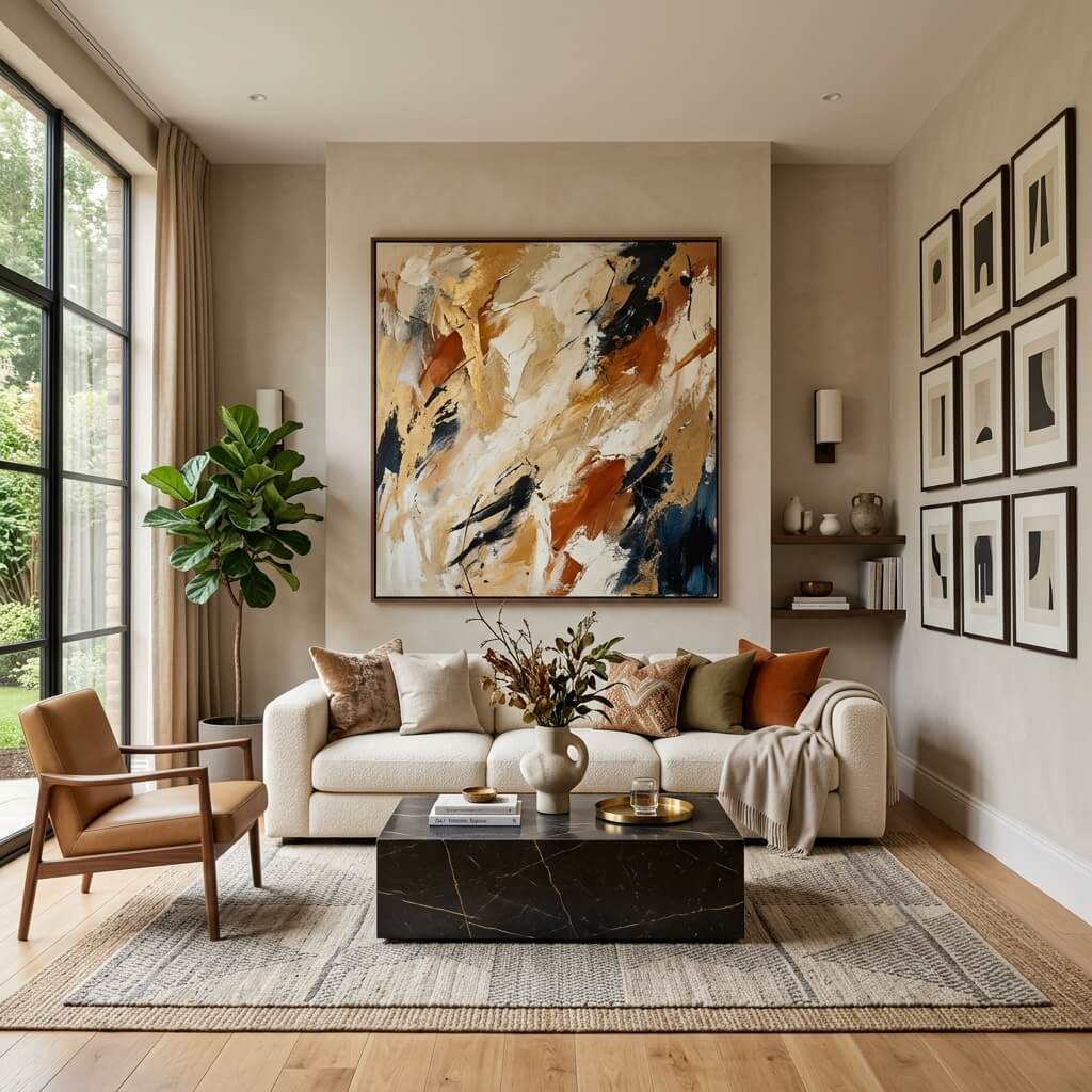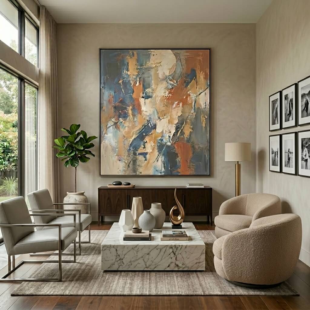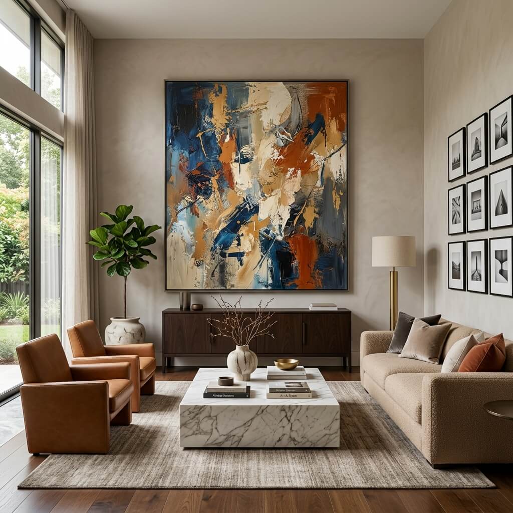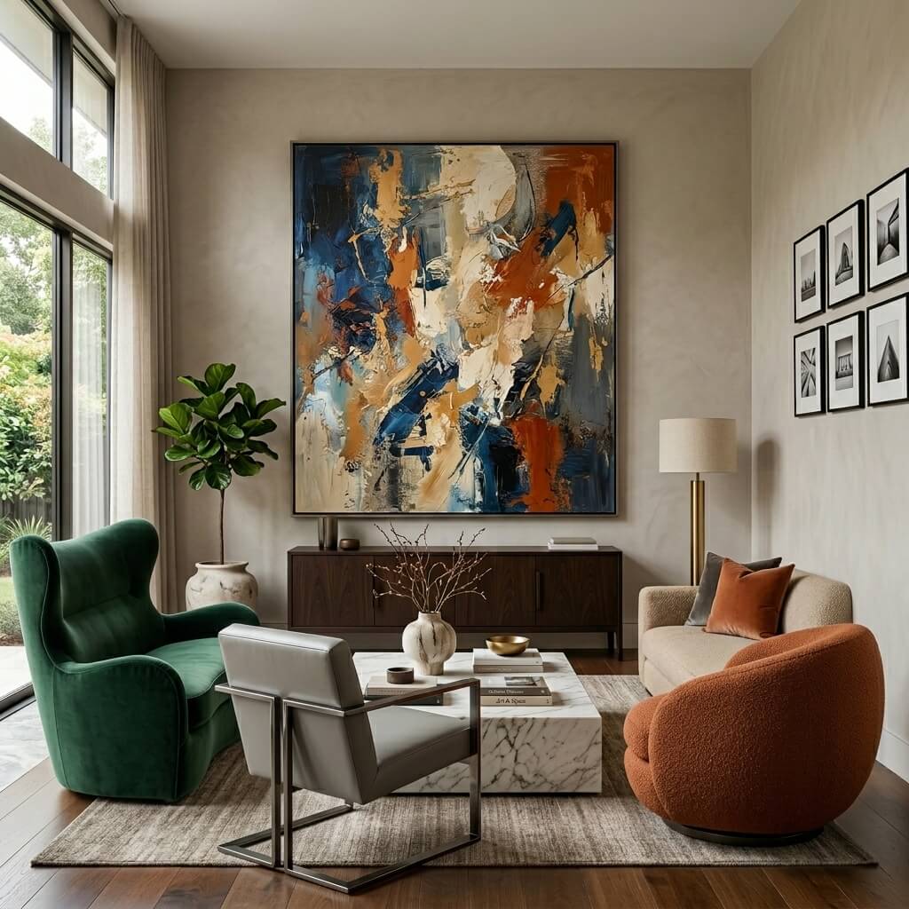 I once hung one large canvas instead of five small frames. The difference? Night and day.