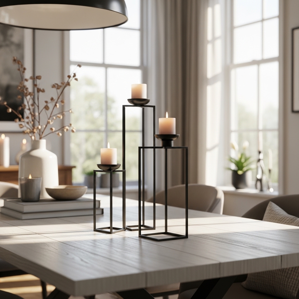 Black metal candle holders add instant modern flair. I love how they pop against wood or white tables.
