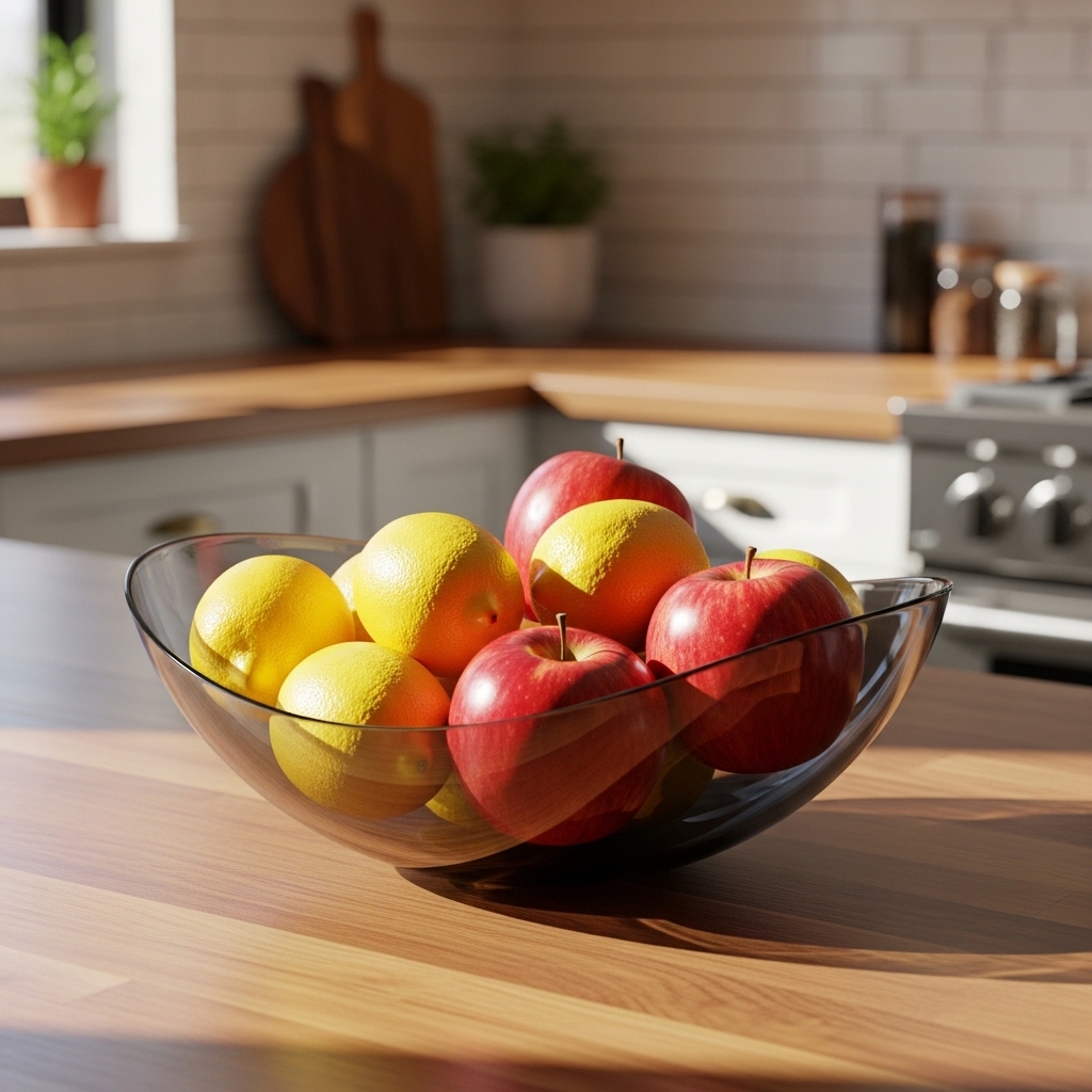A sleek fruit bowl adds color and keeps snacks within reach. I use this for lemons or apples.