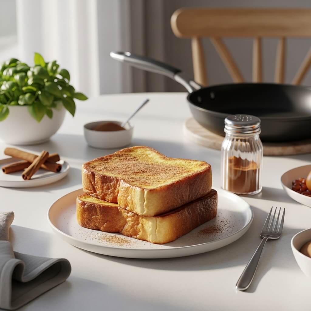 Soak thick bread slices in an egg‑milk mixture with cinnamon, then fry until golden.